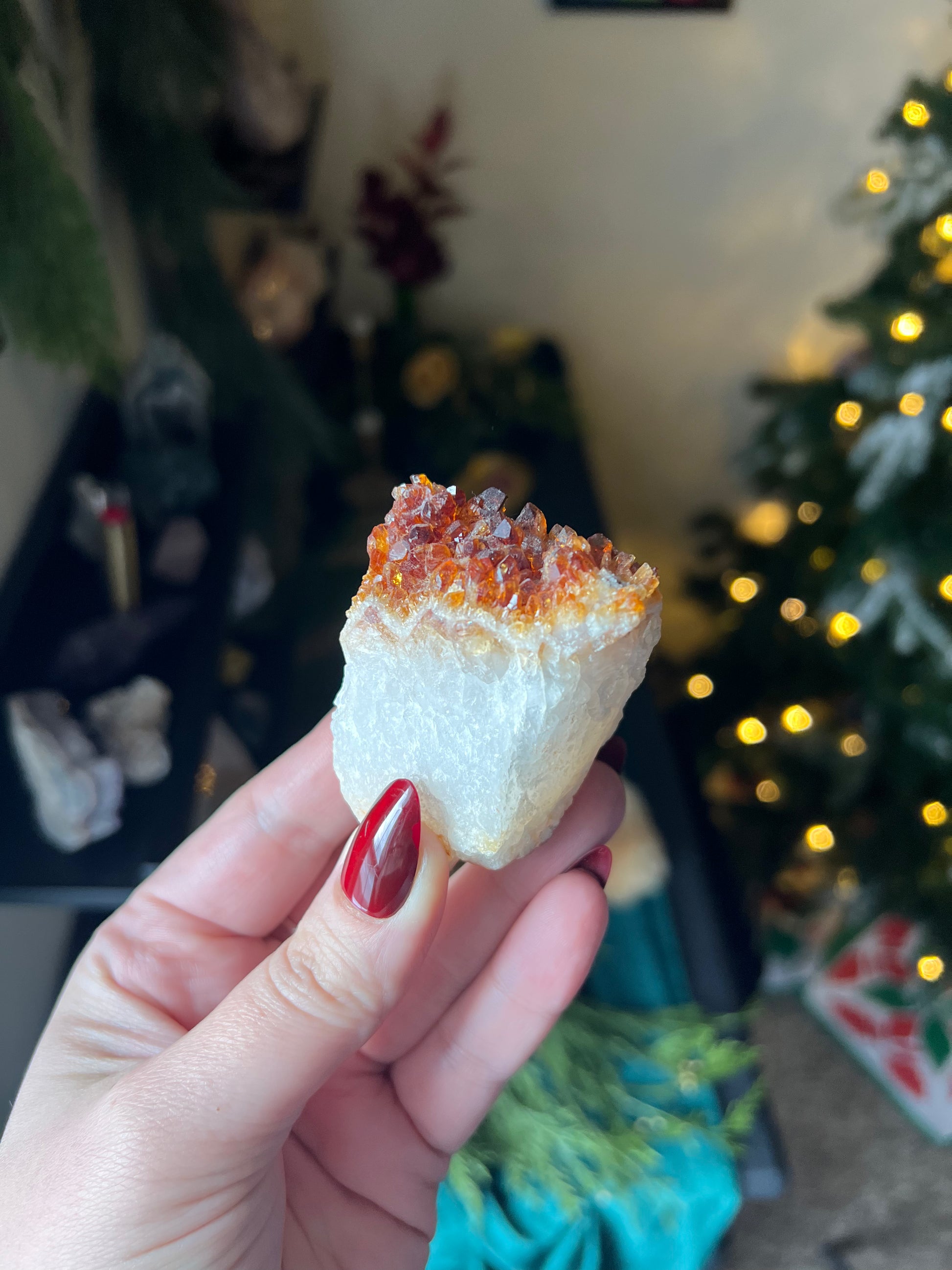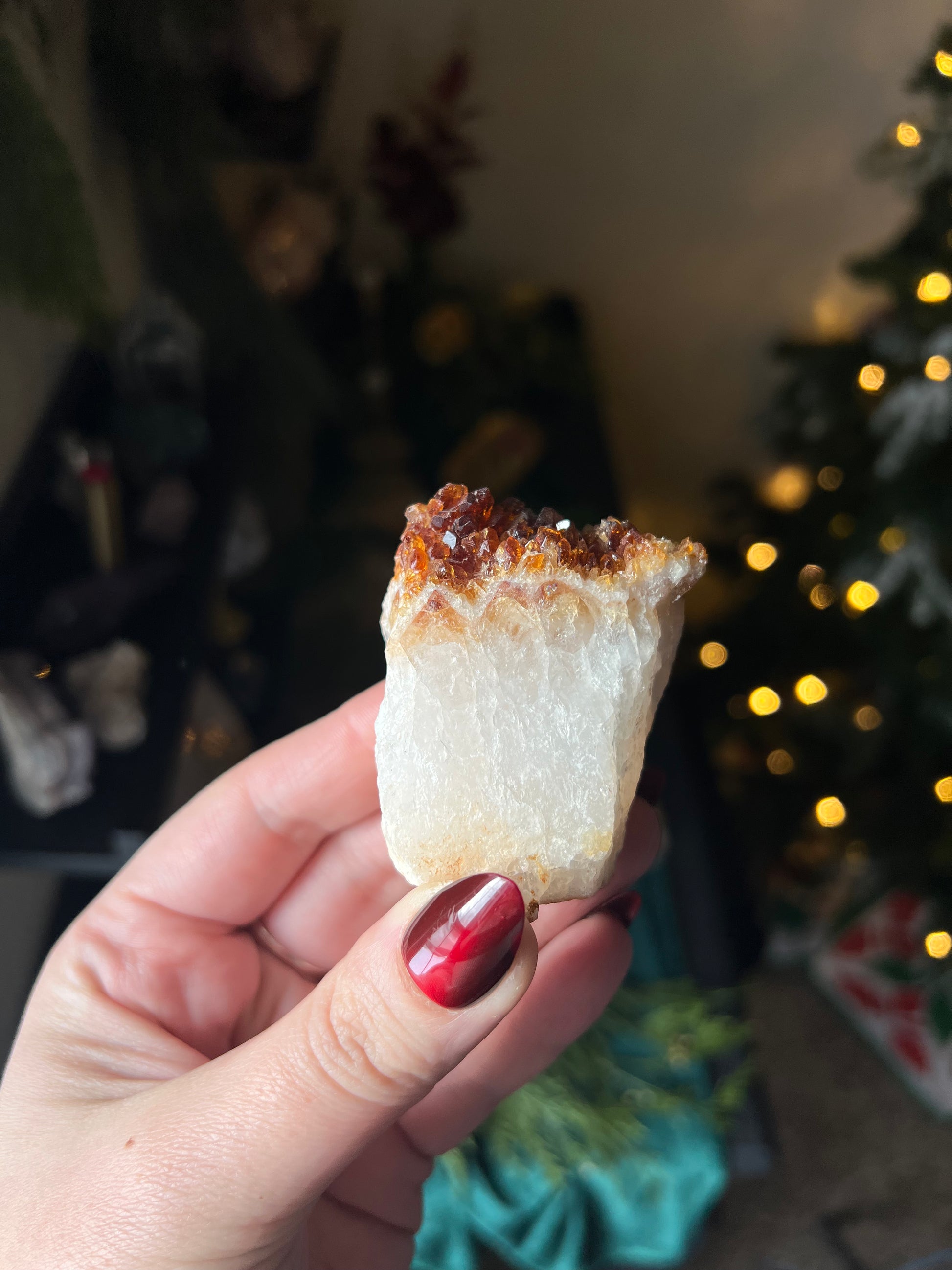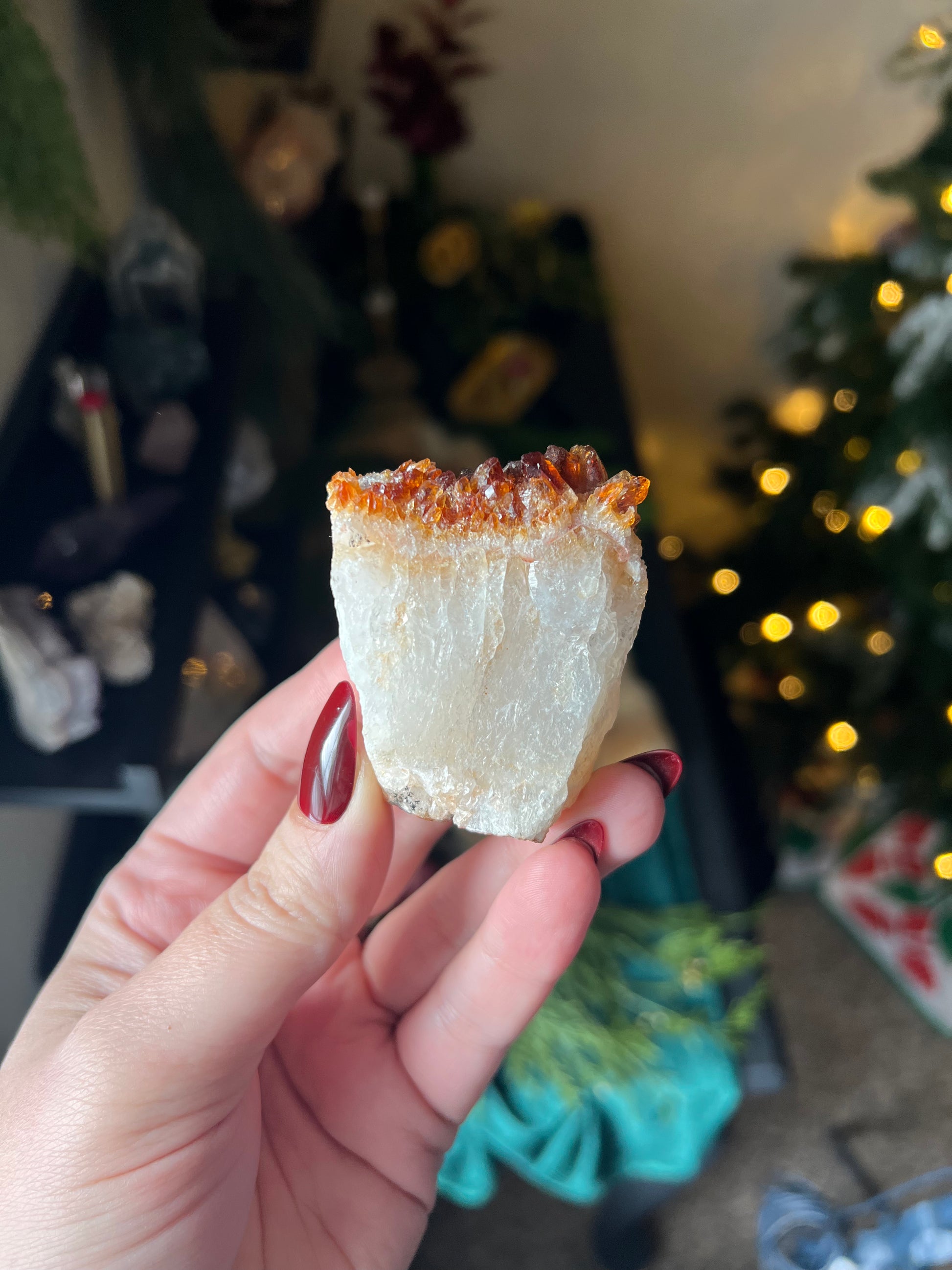 Story sale listing for Taylor. Citrine crystal, heat treated amethyst.