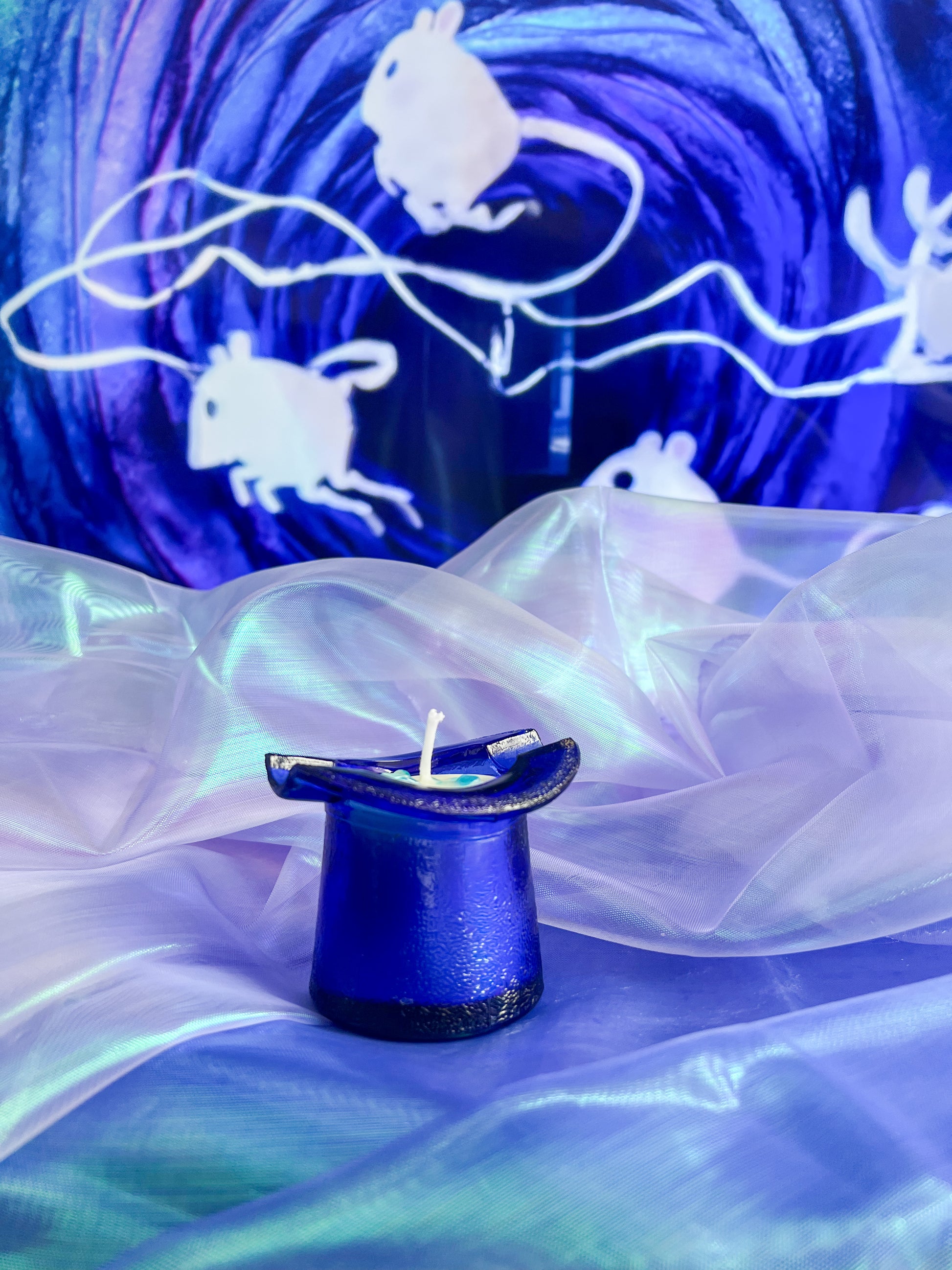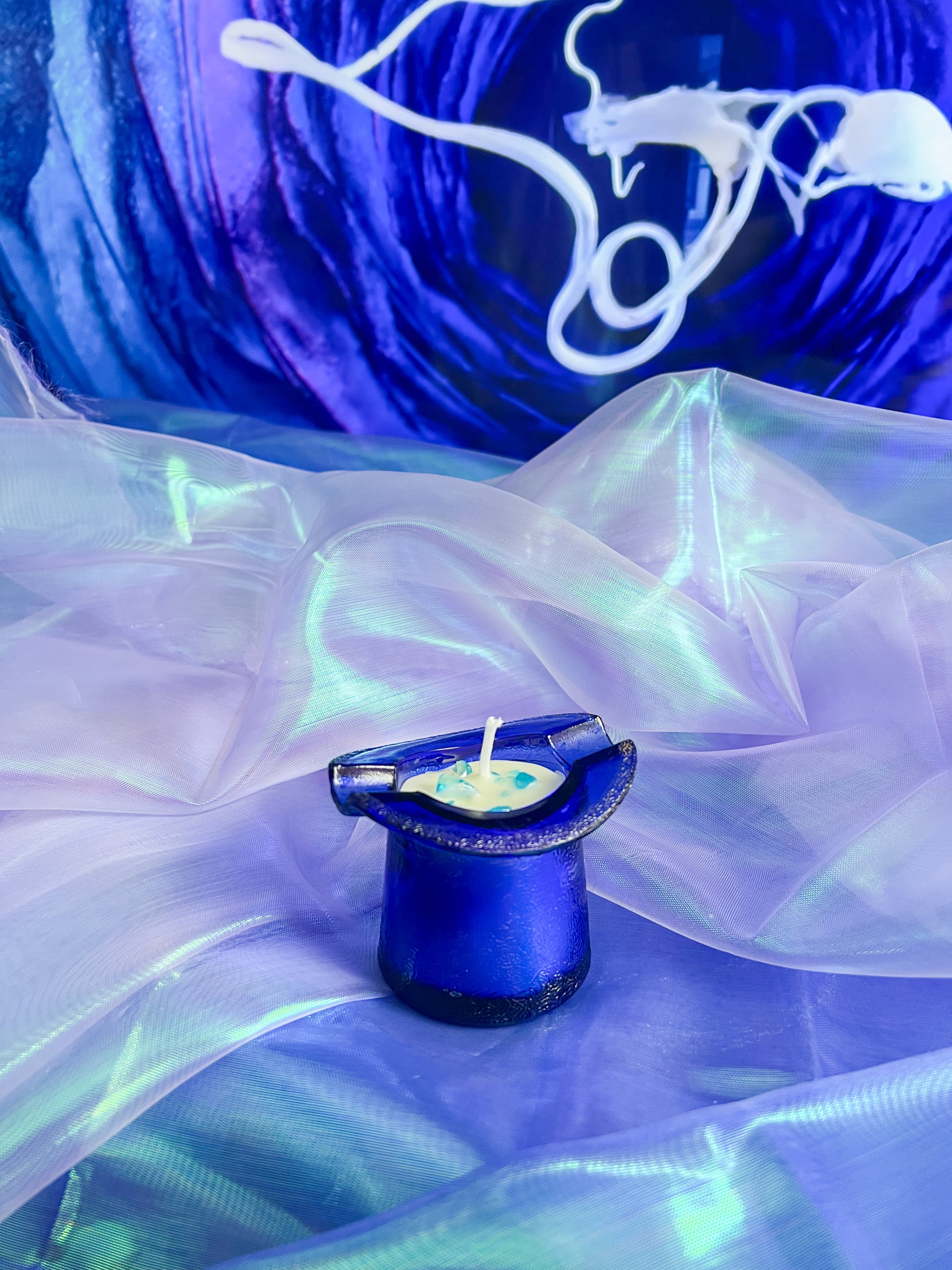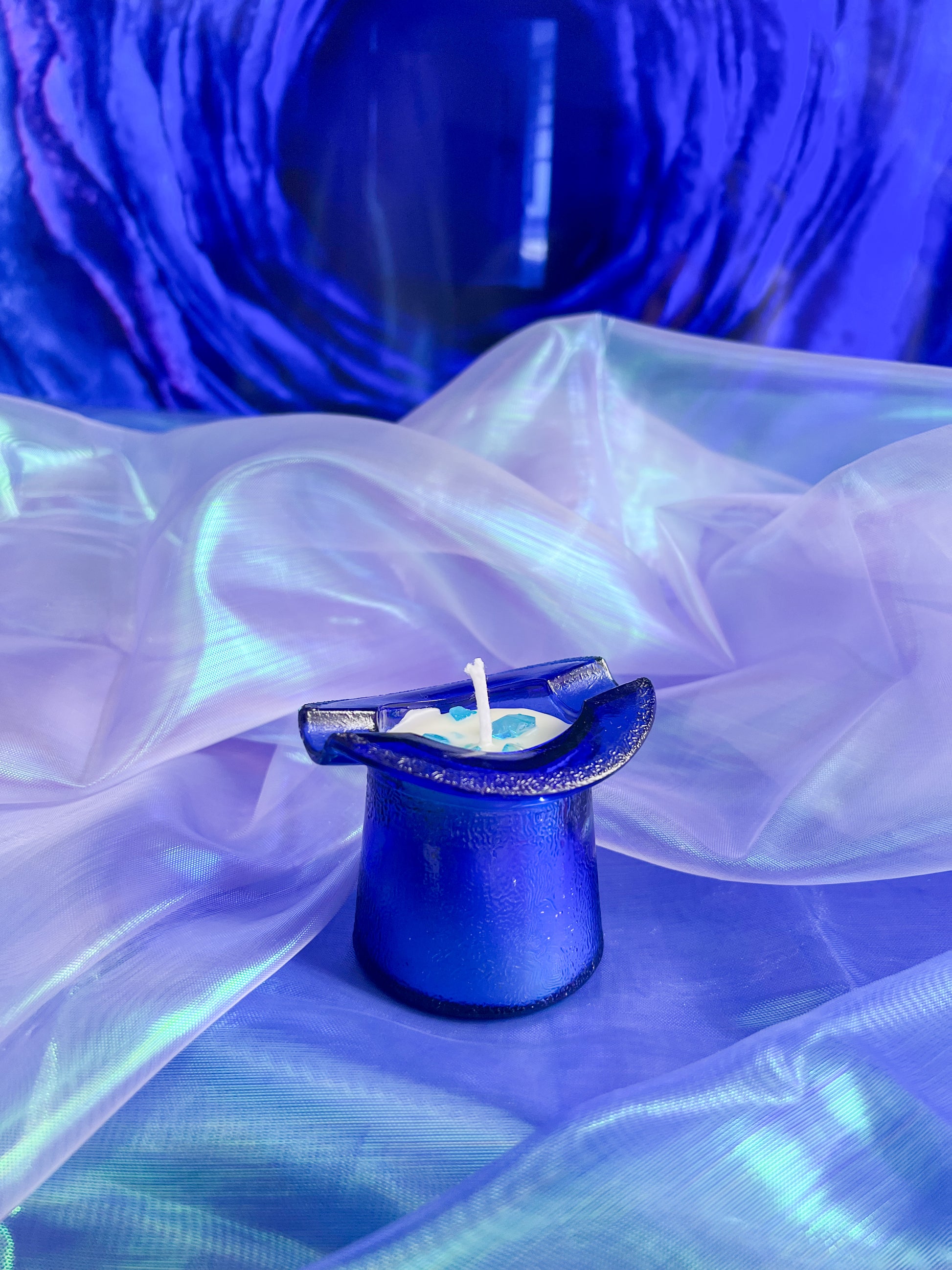 When I saw this 1940’s cobalt blue top hat ashtray I absolutely had to make it a candle for The Amazing Mr B.! Scented like your favorite nostalgic breakfast cereal, because whether or not he’s loopy or drunk, we love him all the same. Bright citrus, cherry, and orange mix with creamy vanilla and warm sandalwood for a playful, absurdly delicious fragrance.