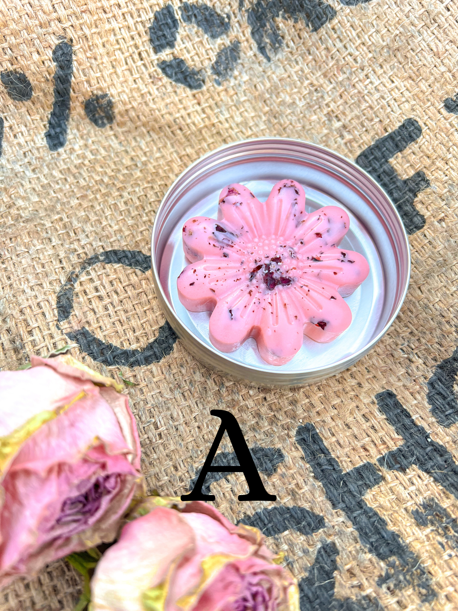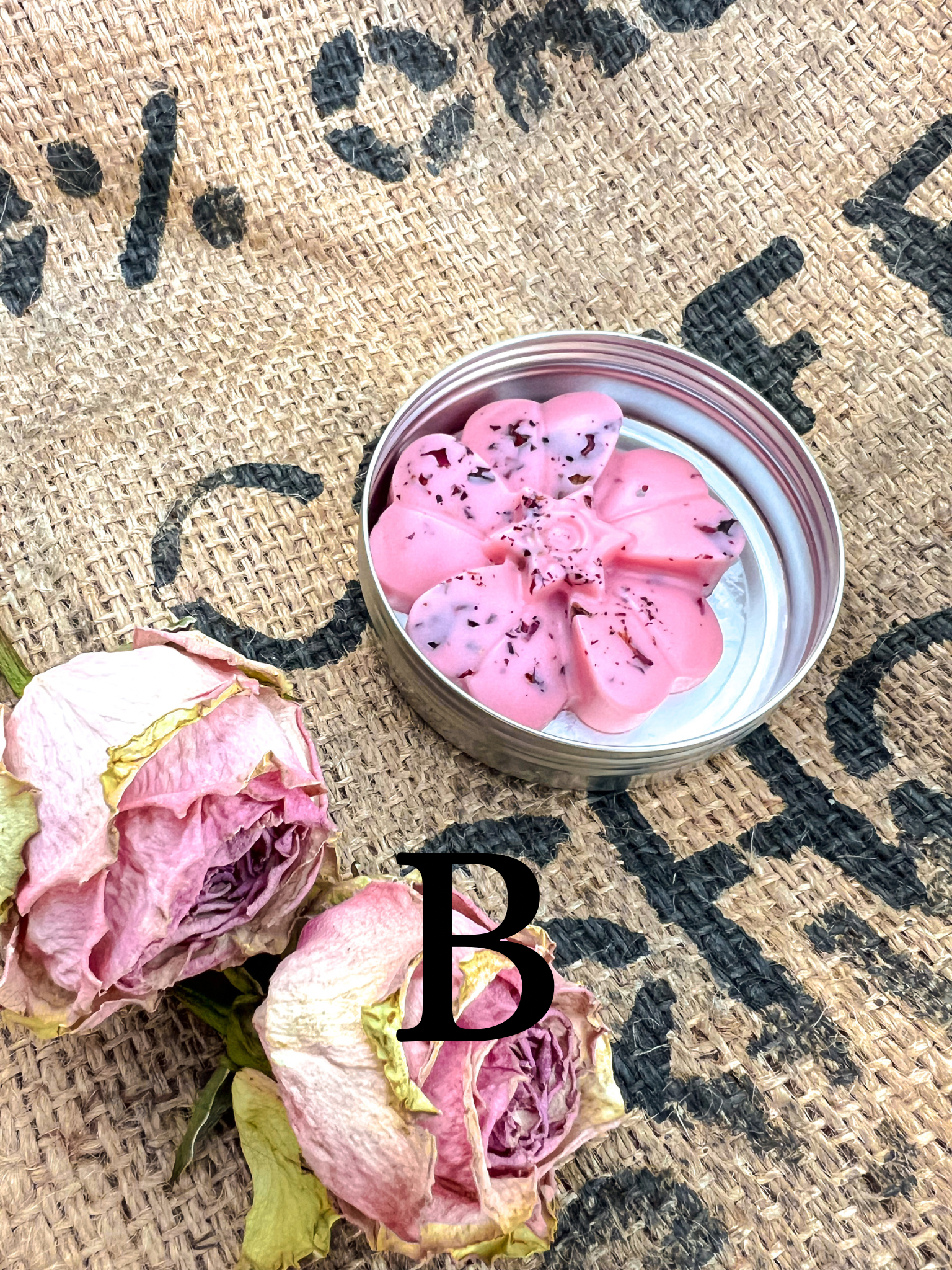 Lotion bars are a solid lotion that when warmed by your hands melts into a luxurious, softening liquid that quickly absorbs into the skin. Made with locally sourced organic beeswax, deodorized coco butter, rose infused jojoba oil, crushed organic rose petals and a dash of tapioca powder to provide a deeply penetrating moisturizer that doesn’t feel heavy or sit on top of the skin. Scented with notes of honey, warm vanilla sugar and rose. Limited supply available!
